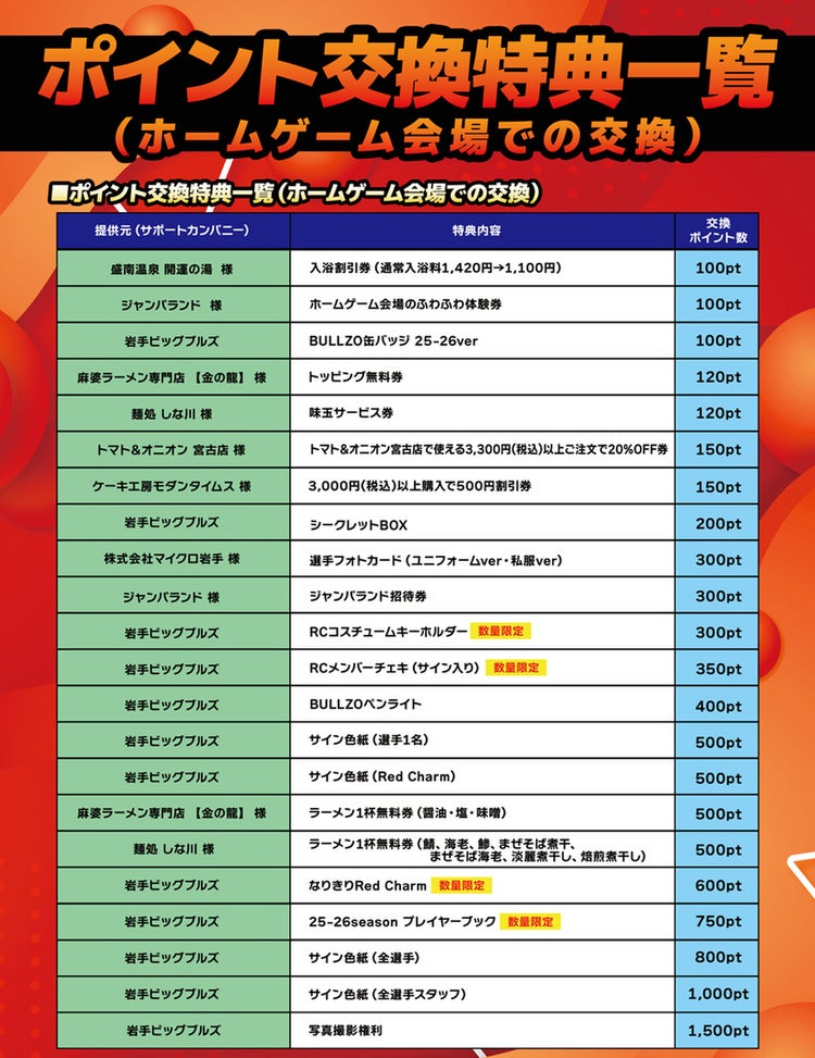 ・ポイント交換は「2026年4月26日(日)青森戦試合終了後」までとさせていただきます。