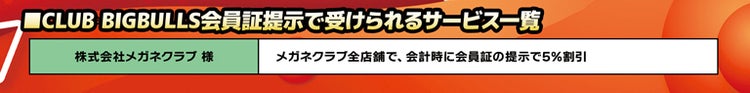 CLUB BIGBULLS会員証 提示でサービスが受けられます! |