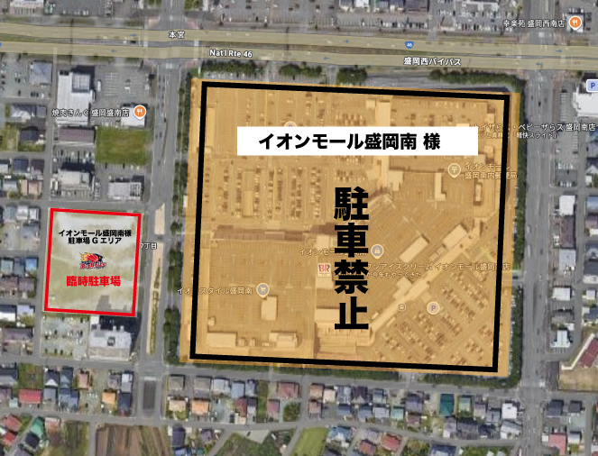 ※近隣商業施設や学校施設への無断駐車はご遠慮ください。