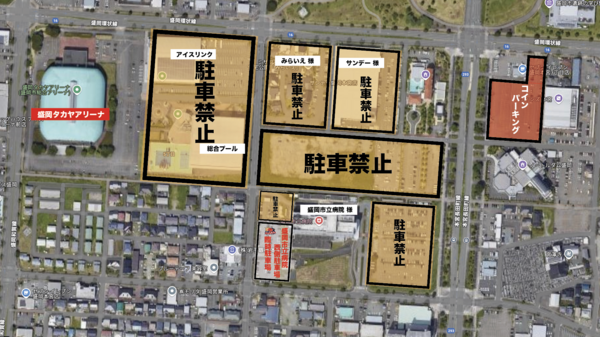 ※アイスリンク、総合プールは駐車いただけません。