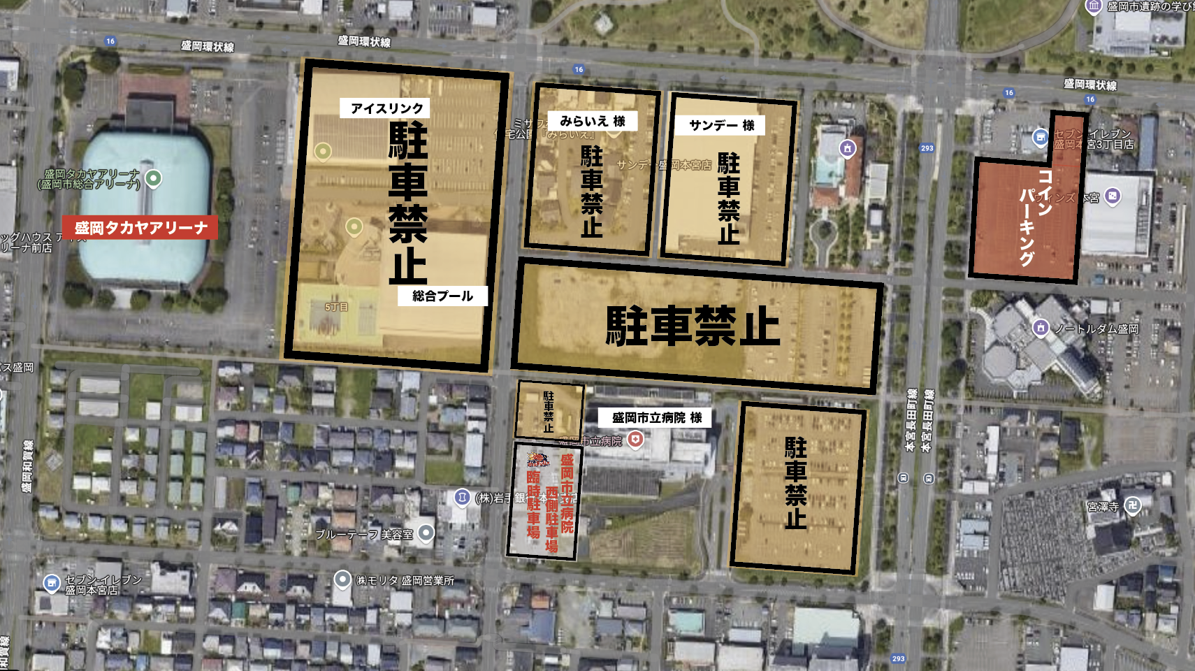 ◉イオンモール盛岡南(臨時駐車場):250台