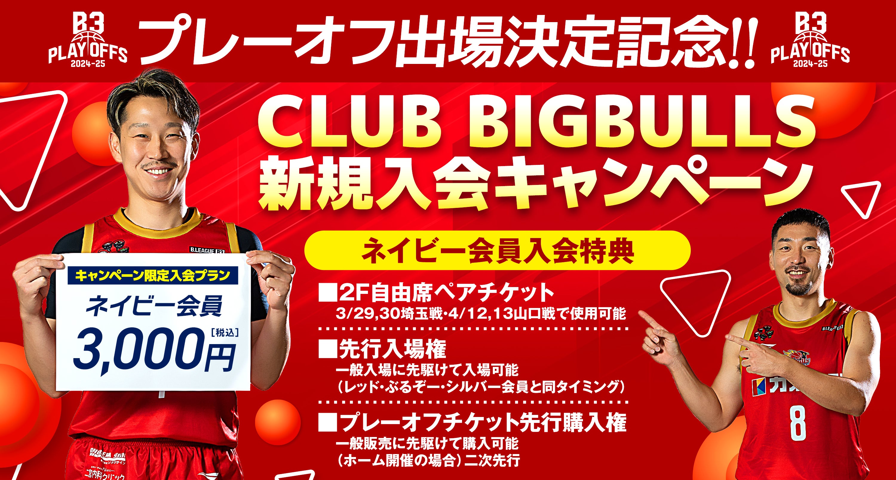 【ファンクラブ】プレーオフ進出記念!CLUB BIGBULLS新規入会キャンペーン