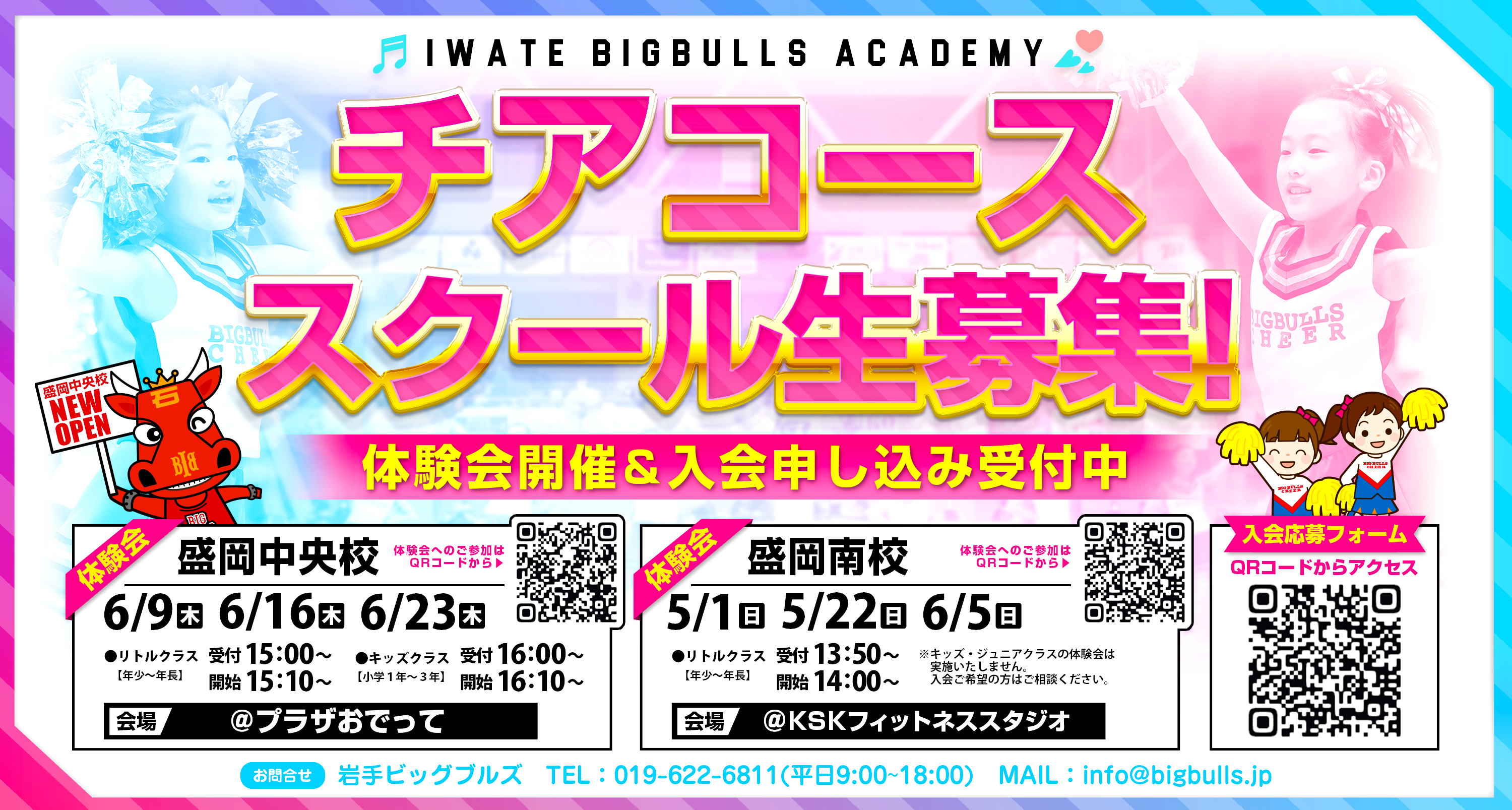 【ACADEMY】岩手ビッグブルズアカデミーチアコース盛岡中央校開校/無料体験会のお知らせ