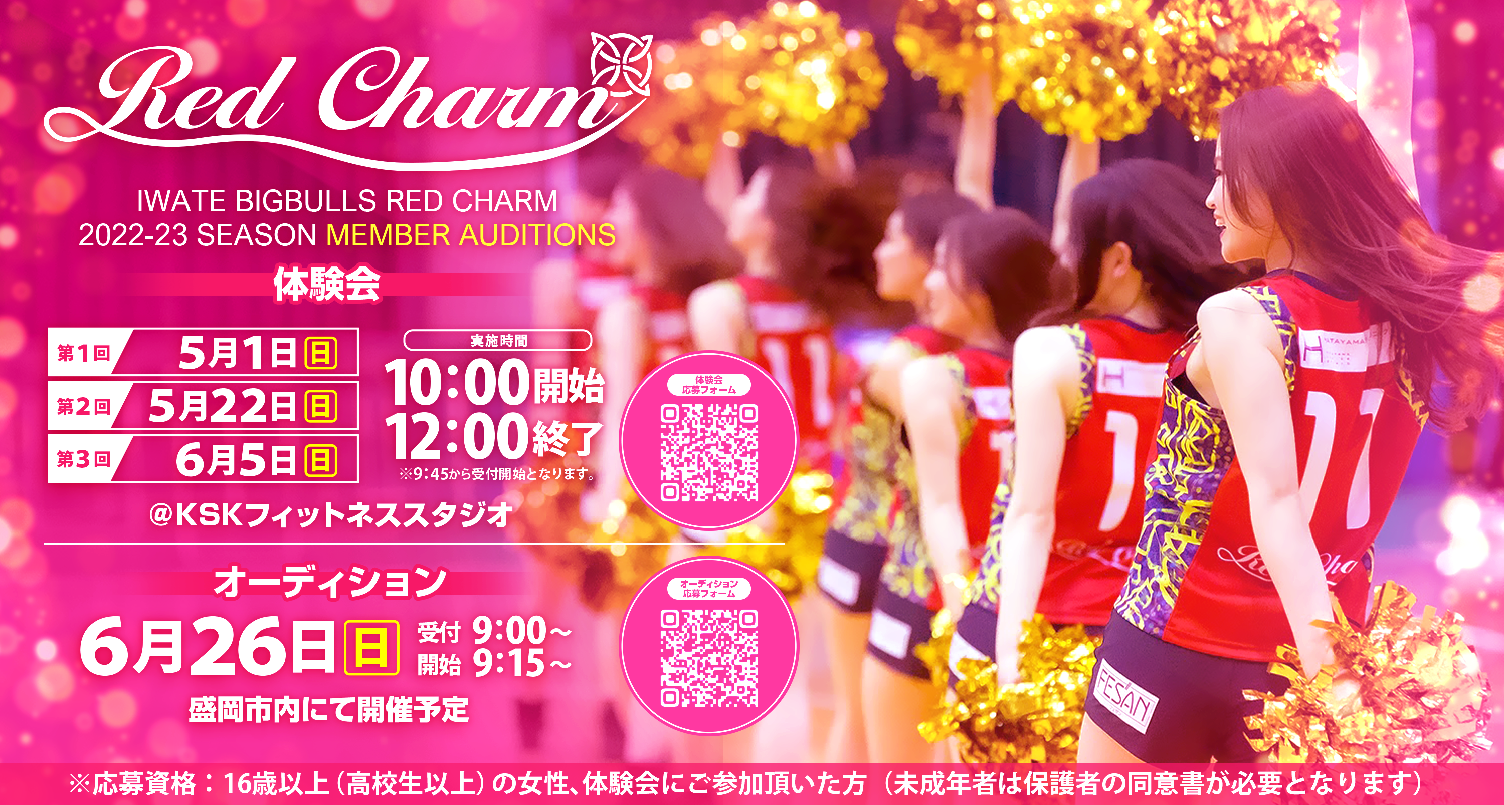 【CHEER】岩手ビッグブルズ専属チア「Red Charm」2022-23seasonオーディション/体験会のお知らせ