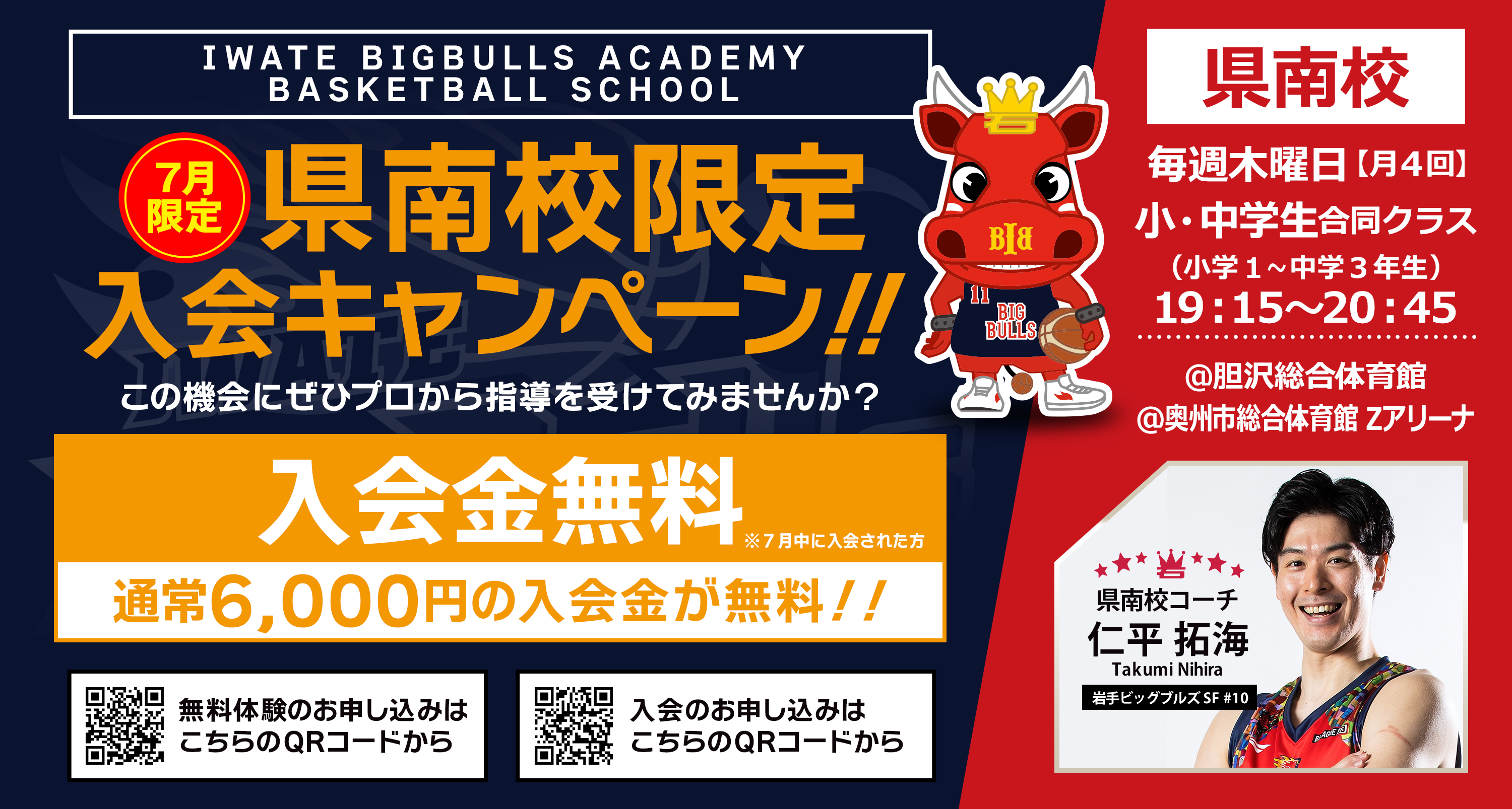【ACADEMY】[第7期]岩手ビッグブルズU15 追加トライアウト開催のお知らせ