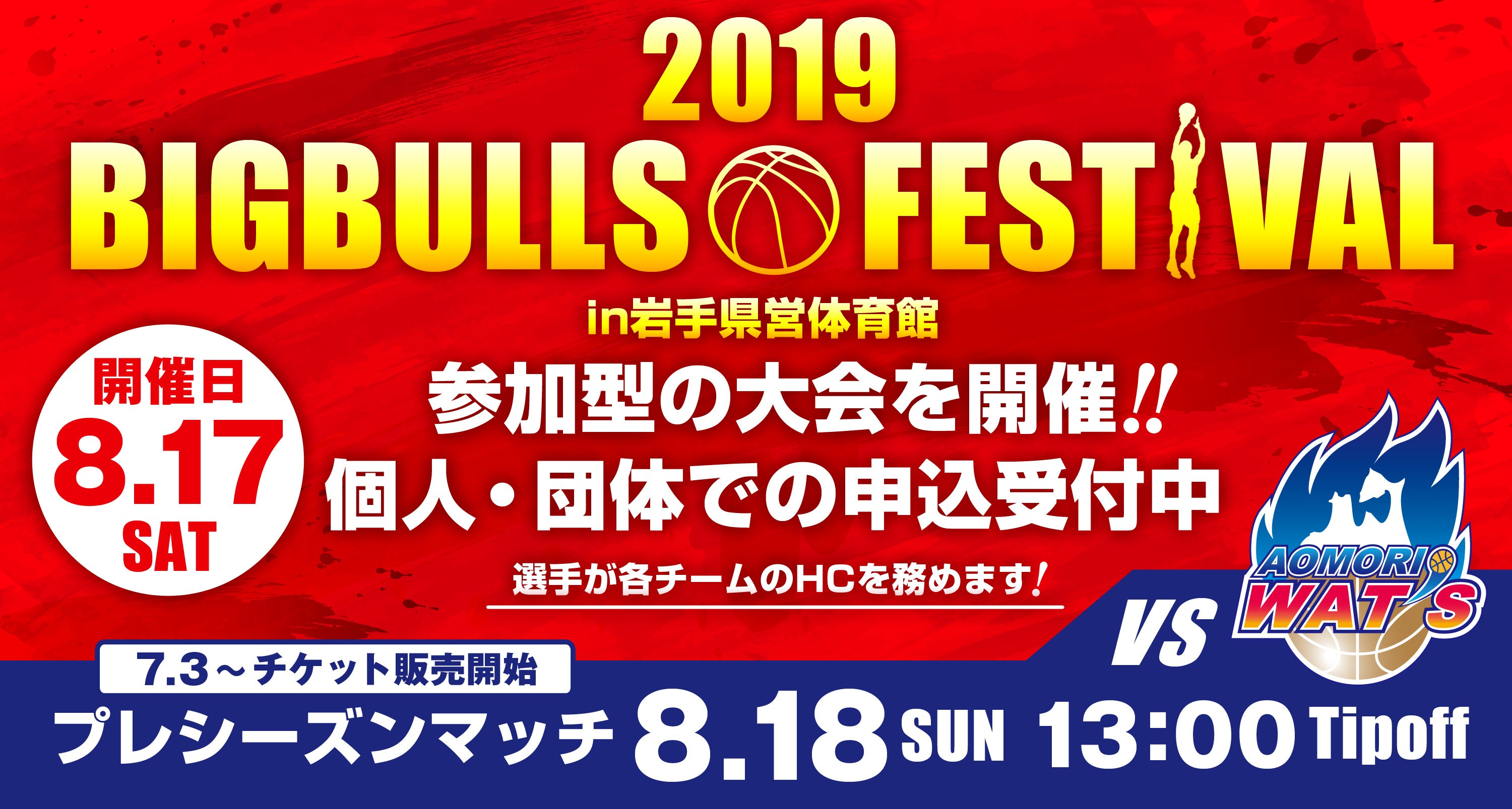 【チケット情報】新生岩手ビッグブルズ始動!プレシーズンマッチチケット好評発売中!