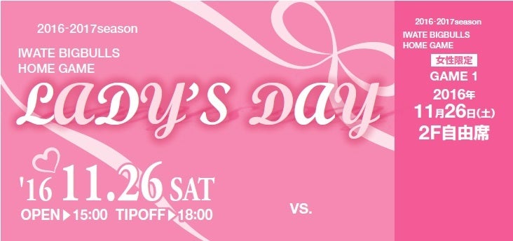 【チケット情報】11月26日(土)・27日(日)はレディースデー!!女性は2F自由席が半額!!