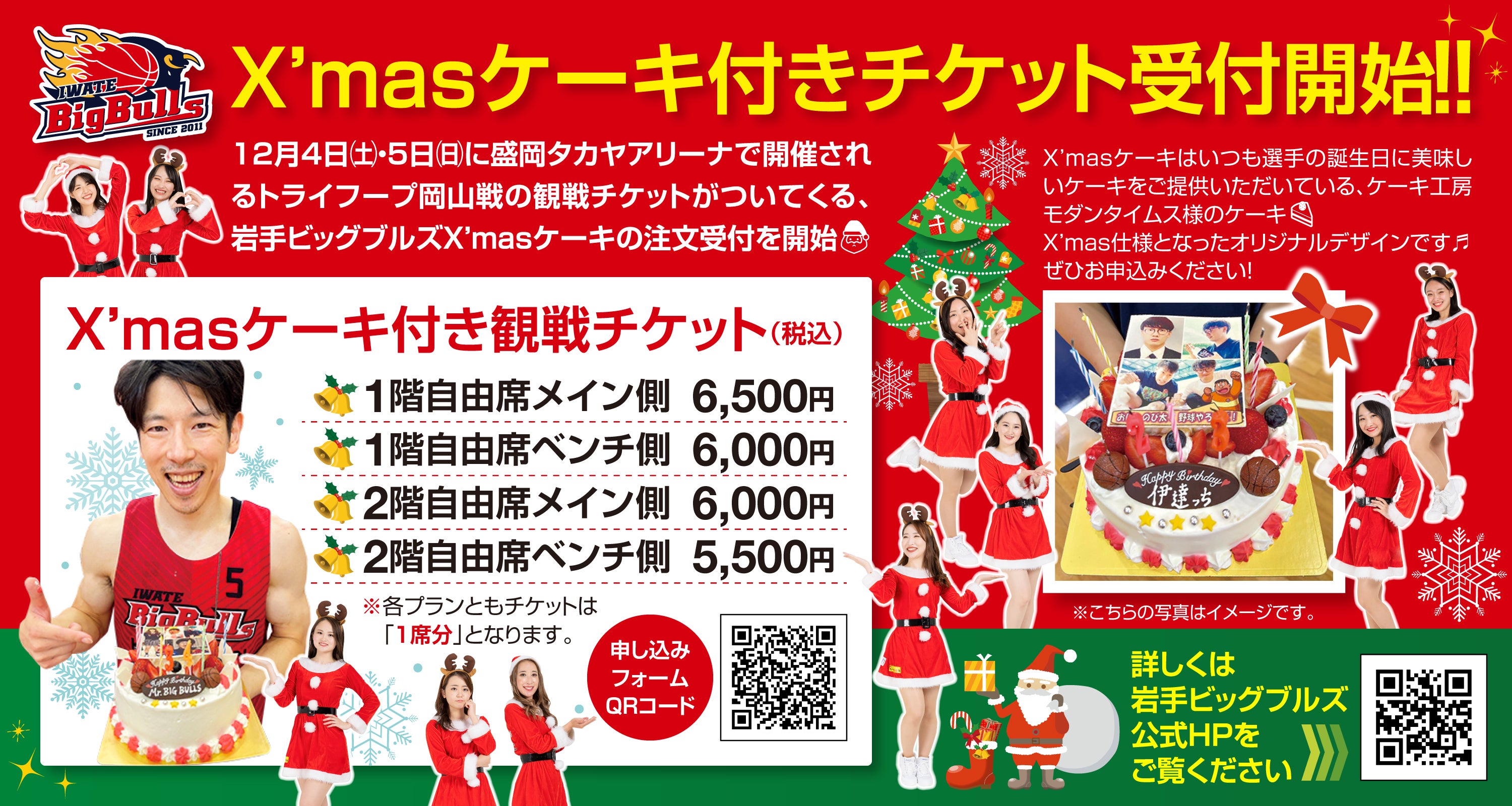 【チケット情報】岩手ビッグブルズXmasケーキ付きチケット販売開始🎄