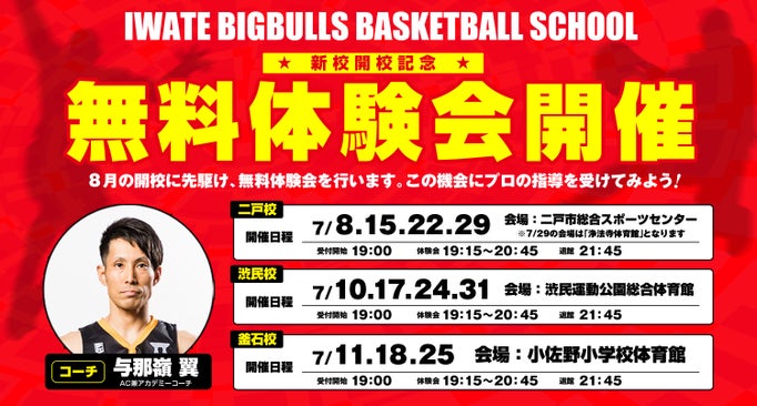 【ACADEMY】岩手ビッグブルズアカデミー バスケットコース 渋民校・二戸校 開校!