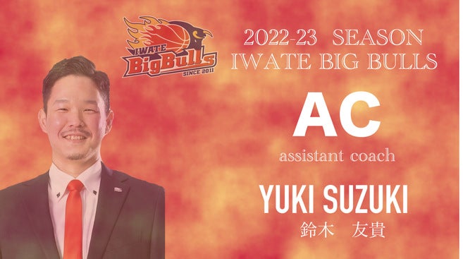 この度、岩手ビッグブルズでは、鈴木友貴氏と2022-23seasonのアシスタントコーチ契約が締結となりましたのでお知らせいたします。