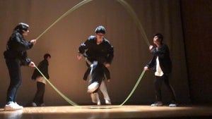 ダブルダッチとは2本の縄を使って跳ぶ縄跳び。向かい合ったターナーと呼ばれる二人の回し手が2本の縄を内側に回し、その中でジャンパーが技を交えながら跳ぶ。スポーツです!