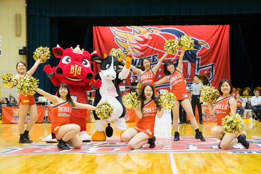 ビッグブルズチアのパフォーマンスのほか、バスケットゴールを設置しフリースローチャレンジやグッズ販売も行います。