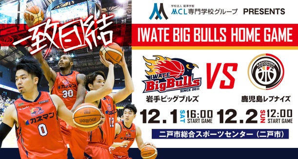このたび岩手ビッグブルズでは、2018年12月1日(土)2日(日)に開催される「B3.LEAGUE 2018-19season ホーム第6節 レギュラーシーズン 鹿児島レブナイズ戦」の冠パートナーが「MCL専門学校グループ」様に決定しましたのでお知らせいたします。