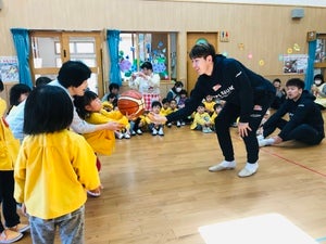 園児さんたちはとっても元気いっぱいで、中野選手と草野選手の身長の大きさにも元気なリアクションをしてくれました。