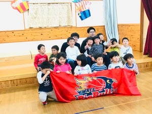 なかなか訪問させていただく機会がない普代村に、大きな選手がいきなり登場したことに園児さんたちはびっくりしていましたが、「慎也お兄さん」「浩平お兄さん」と呼んでくれ、すぐに打ち解けてくれました。