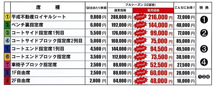・フルシーズンチケット(ホームゲーム全16節32試合対象)