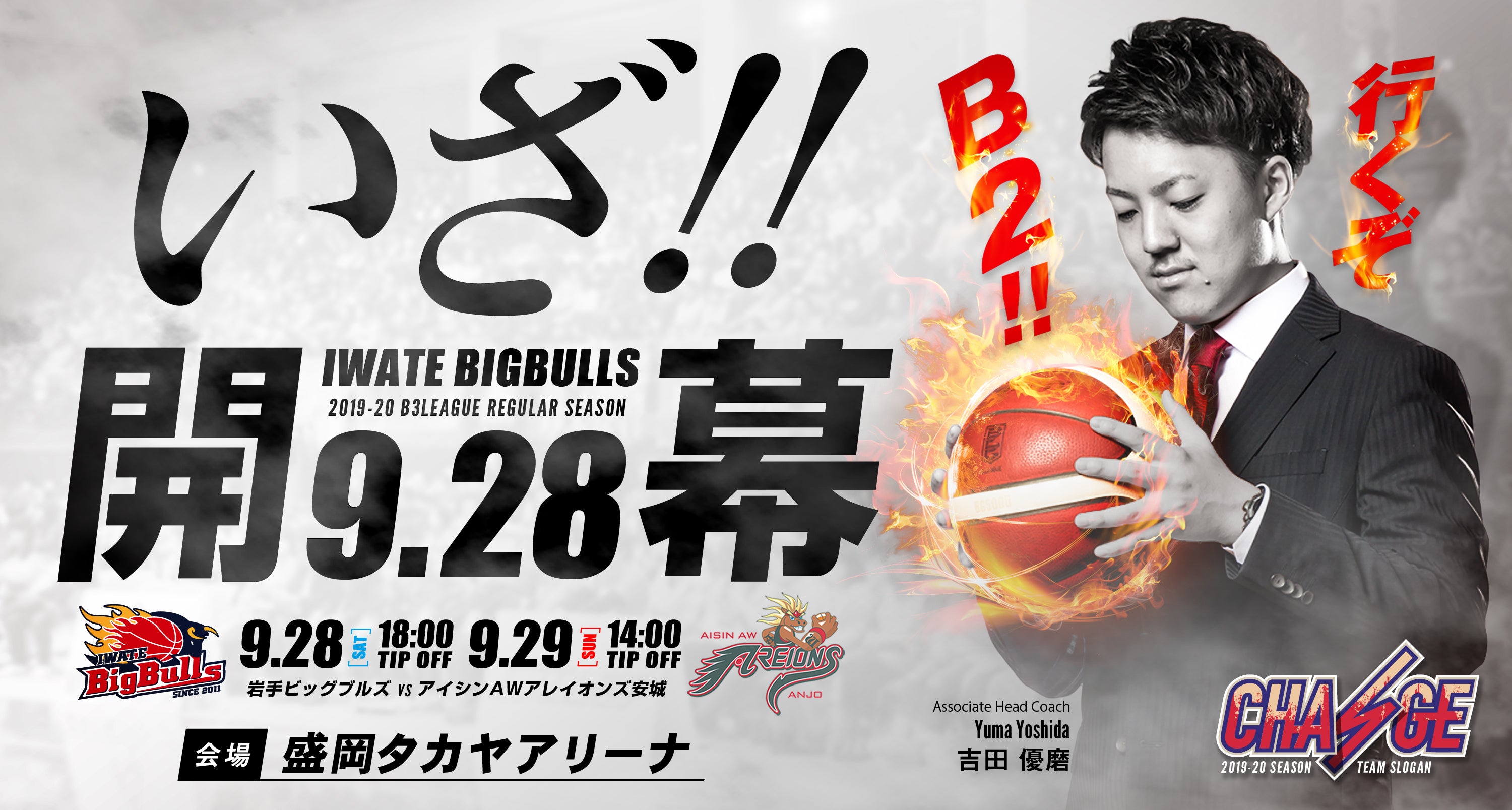 いよいよ2019-20シーズンがスタートします‼️B2昇格を目指す今季。9/28、29に盛岡タカヤアリーナで行われる記念すべき開幕節。盛岡市様の協力を頂きながら、全席無料でご観戦いただけることになりました❗️クラブ史上初の取り組み。当日は1人でも多くの方々に会場を足をお運びいただき、会場を赤く染めましょう❗️