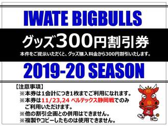 会場の岩手県営体育館チケットカウンターにて当日券をお買い求めの方全員に,当日グッズ販売ブースでご利用いただける「グッズ300円割引券」をプレゼント!