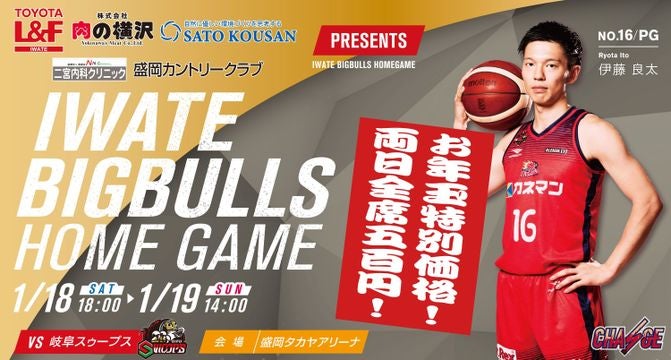このたび岩手ビッグブルズでは、2020年1月18日(土)・19日(日)に開催される「B3.LEAGUE 2019-20season ホーム第8節 岐阜スゥープス戦」の冠パートナーが「トヨタL&F岩手」様「肉の横沢」様「佐藤興産」様「二宮内科クリニック」様「盛岡カントリークラブ」様に決定しましたのでお知らせいたします。