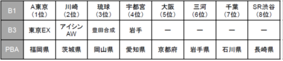 《1次R》PBA代表8チーム/B3クラブ4チーム(昇降格反映後の昨年度順位上位) 計12チーム