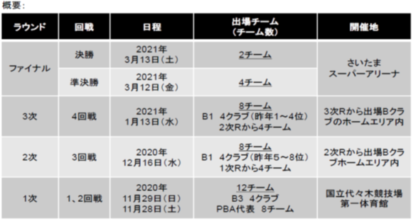 《3次R》B1クラブ4チーム(昨季Bリーグ内暫定順位1~4位)/2次Rから4チーム 計8チーム