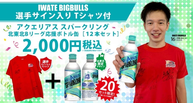【グッズ情報】選手サイン入りTシャツ付き アクエリアススパークリング北東北Bリーグ応援ボトル缶 12本セット登場!