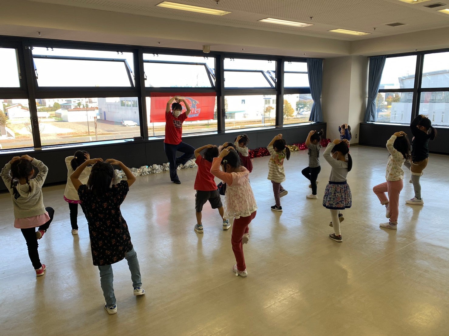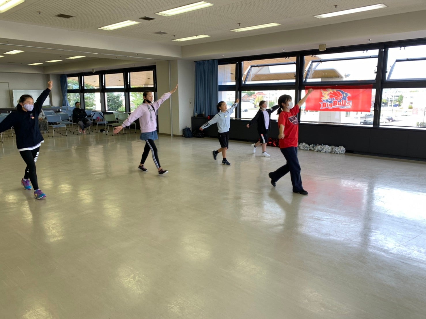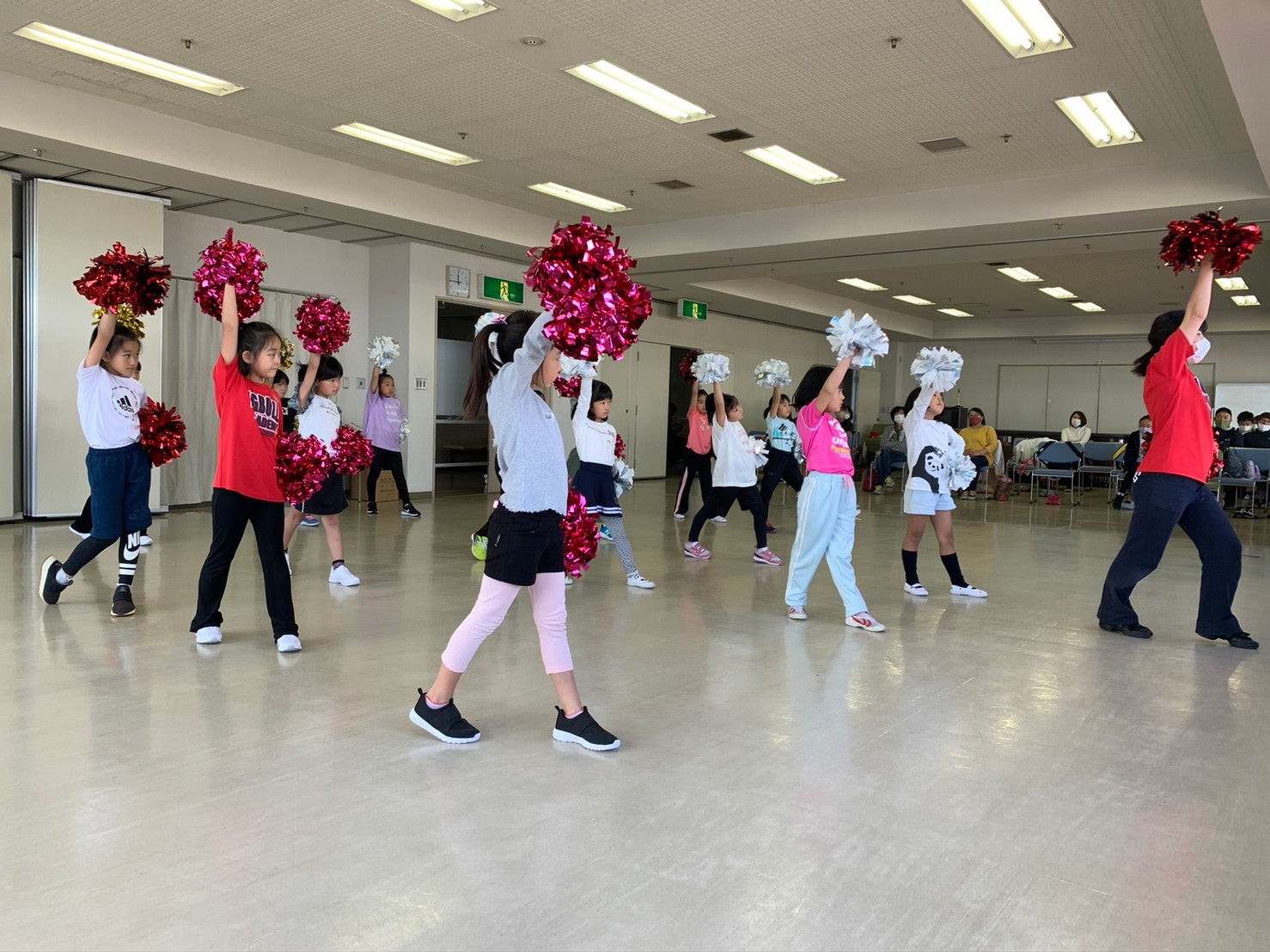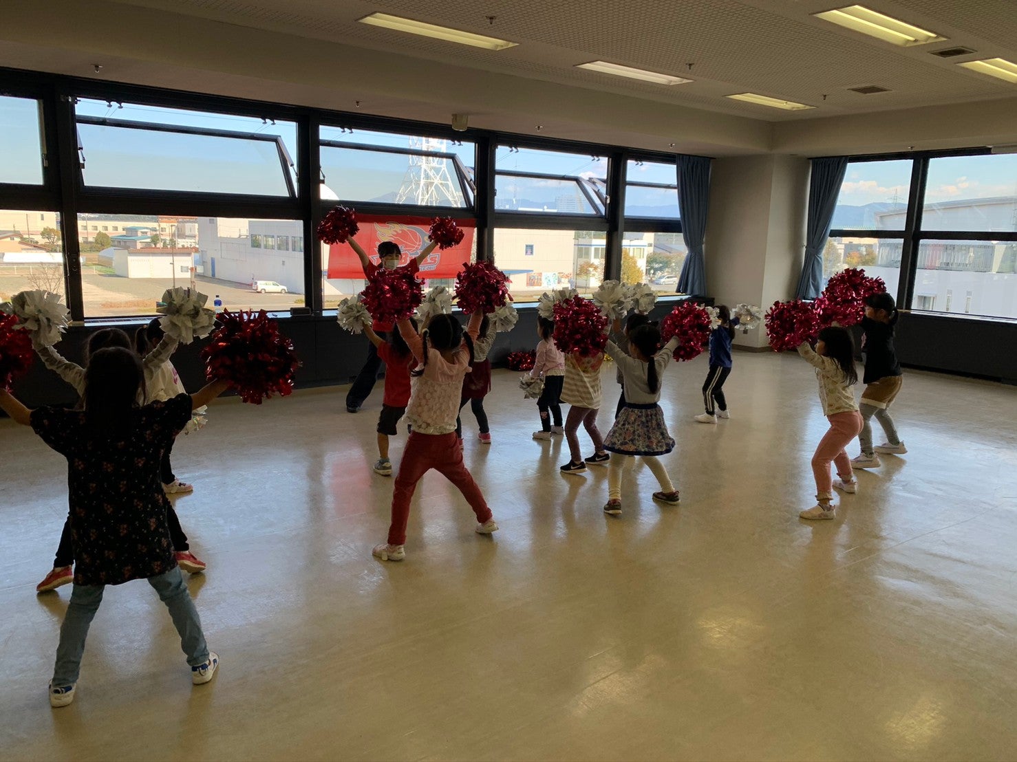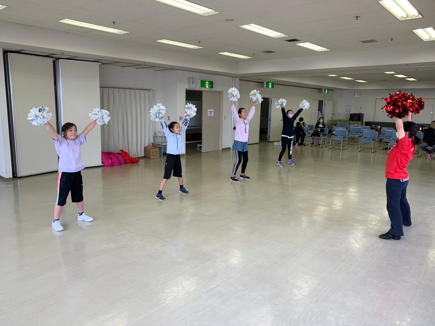 ポンポンを持つと重さでピンと腕を伸ばすことが難しいですが、力強く踊ることができました