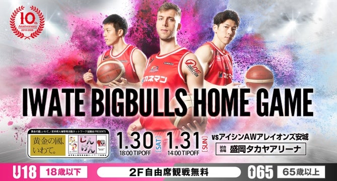 2021年1月30日(土)・31日(日)に盛岡タカヤアリーナで開催される 「B3.LEAGUE 2020-21season 黄金の國、いわて。/岩手県人権啓発活動ネットワーク協議会Presents 岩手ビッグブルズvs.アイシンAWアレイオンズ安城」のゲームスケジュールをお知らせいたします。