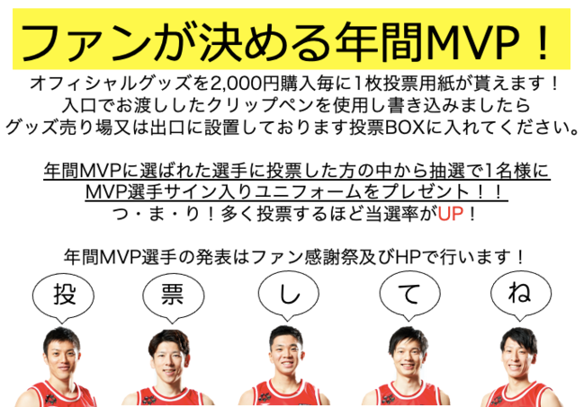 当選者は、ファン感謝祭にてMVP選手自ら抽選させていただきます。