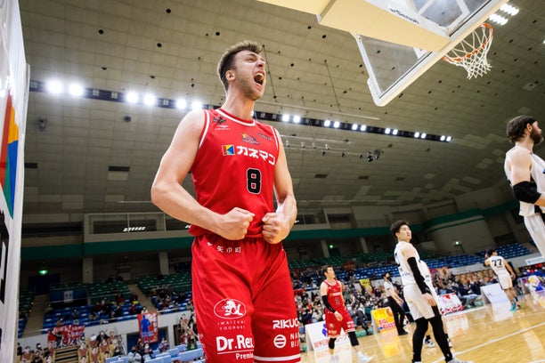 エリック選手は、本当にこの2年間で一番成長した選手でした。攻撃では持ち味の豪快なダンクはもちろん、シュート精度も向上し、味方を使うプレーも飛躍的な伸びを見せました。