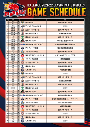 【岩手ビッグブルズ】2021-22seasonゲームスケジュールのお知らせ