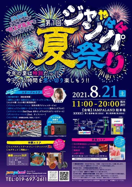 2021年8月21日(土)に矢巾町のJAMPALANDで開催される「やはばジャンパ夏祭り2021」に選手、Red Charm、岩手ビッグブルズアカデミーチアコースが参加させていただきます!