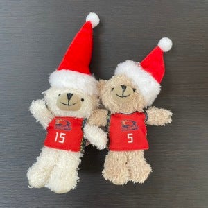 サンタ帽を被った選手やトナカイの角をつけた選手がデザインとなった缶バッジ!