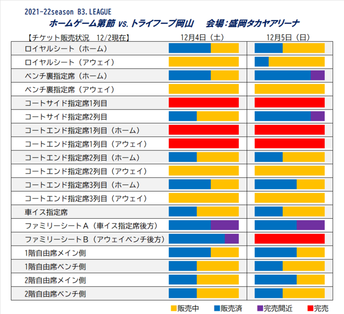 【チケット情報】岡山戦 チケット販売状況 ※12月2日時点