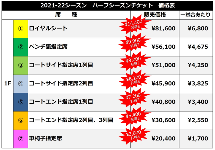 2021-22シーズン ハーフシーズンチケット ⇒ 申し込みフォーム ※1月3日10:00より受付開始となります。