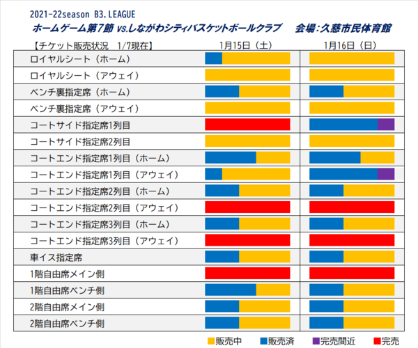 【チケット情報】しながわ戦 チケット販売状況 ※1月7日時点