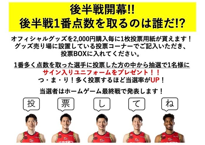 後半戦1番多く点数を取った選手は、ホームゲーム最終戦で発表します!