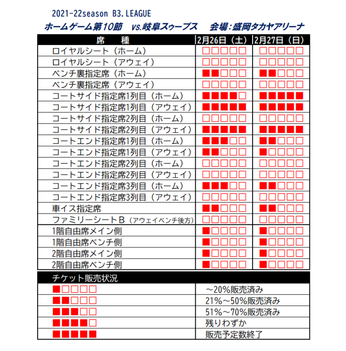 【チケット情報】岐阜戦 チケット販売状況 ※2月15日時点