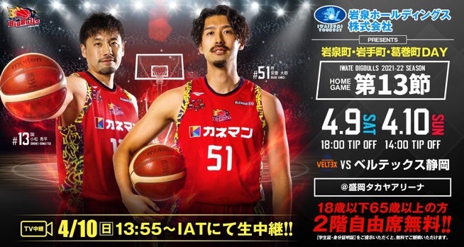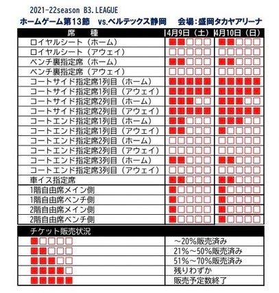 2022年4月9日(土)・10日(日)盛岡タカヤアリーナで開催される「岩泉ホールディングスPresents B3.LEAGUE 2021-22season 岩手ビッグブルズvs.ベルテックス静岡」のチケット販売状況(3月29日時点)についてお知らせいたします。