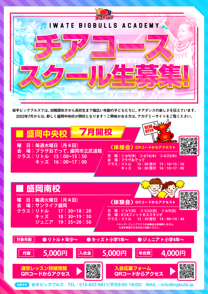 【ACADEMY】岩手ビッグブルズアカデミーチアコース盛岡中央校開校/無料体験会のお知らせ