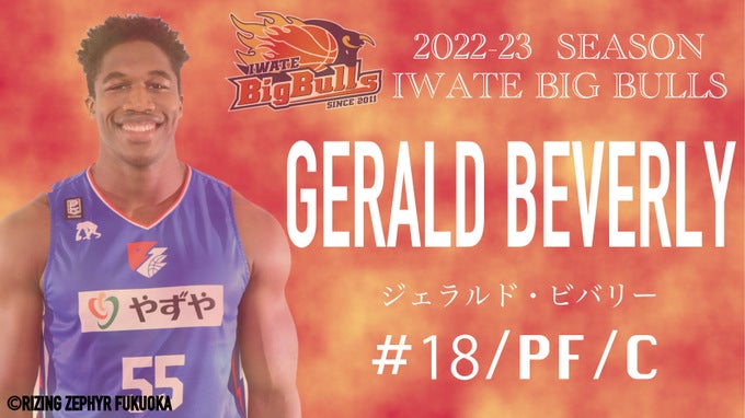 この度、岩手ビッグブルズでは、ジェラルド・ビバリー選手とB3.LEAGUE 2022-23seasonの選手契約が合意に達しましたのでお知らせいたします。