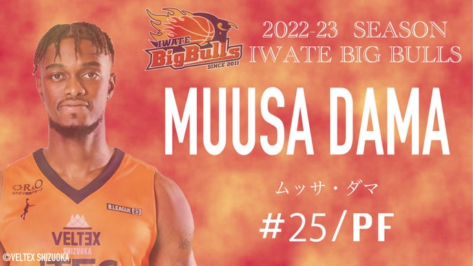 この度、岩手ビッグブルズでは、ムッサ・ダマ選手とB3.LEAGUE 2022-23seasonの選手契約が合意に達しましたのでお知らせいたします。尚、自由交渉リストは6/10(金)の15時に抹消となります。