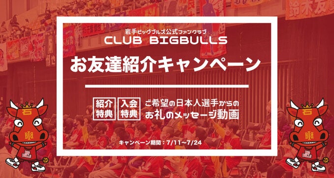 岩手ビッグブルズオフィシャルファンクラブ「CLUB BIGBULLS」では、お友達紹介キャンペーンを実施します!