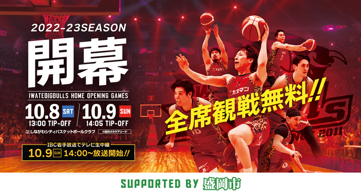 このたび岩手ビッグブルズでは、2022年10月8日(土)・9日(日)に開催される「B3.LEAGUE 2022-23season ホーム開幕 しながわシティバスケットボールクラブ戦」のテレビ生中継が決定しました!