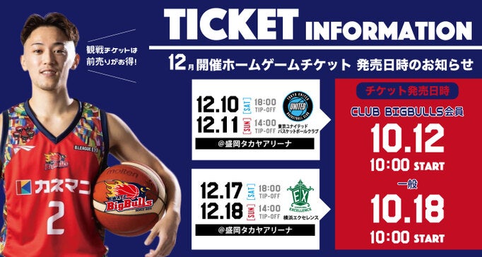 12月開催の岩手ビッグブルズホームゲーム観戦チケットの販売スケジュールが決定いたしましたのでお知らせいたします。