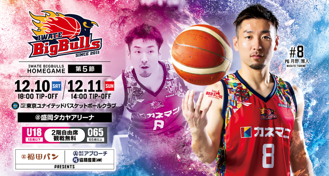 この度、岩手ビッグブルズでは、2022年12月10日(土)・11日(日)に開催される「B3.LEAGUE 2022-23season ホーム第5節 東京ユナイテッドバスケットボールクラブ戦」の冠パートナーが「福田パン」様・「協積産業株式会社」様・「株式会社アプローチ」に決定しました。