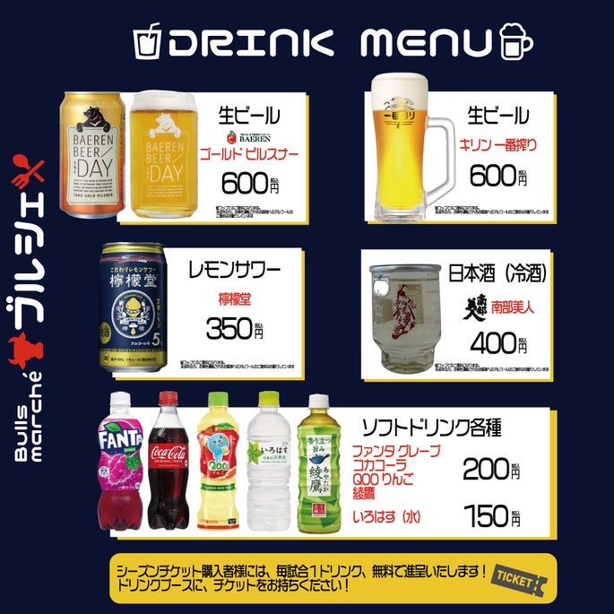 今季より飲食ブースを『Bulls marché(ブルズマルシェ)』と称し、略称『ブルシェ』としてご紹介していきます♪
