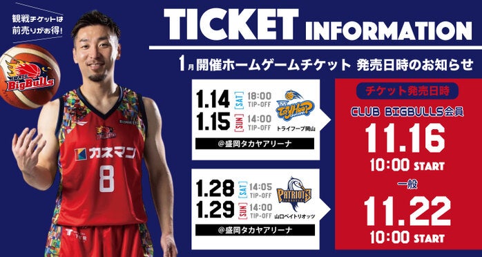 1月開催の岩手ビッグブルズホームゲーム観戦チケットの販売スケジュールが決定いたしましたのでお知らせいたします。