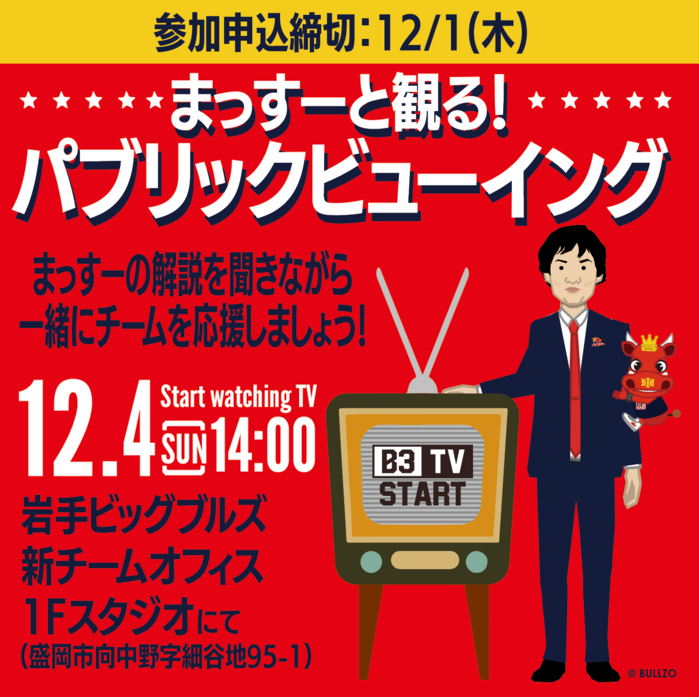 12/4(日)に開催されるAWAY八王子戦のパブリックビューイングを新チームオフィス1Fスタジオにて開催いたします!