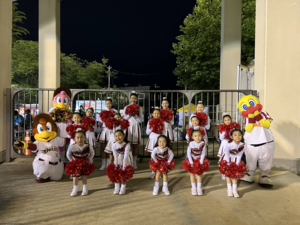 普段は楽天イーグルスの公式戦でパフォーマンスをしていますが、今日は岩手ビッグブルズのブースターの皆さんに笑顔をお届けできるように元気いっぱい踊ります!